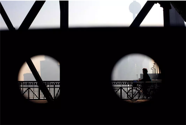 这是谢琴在大桥上骑车的一个镜头。人很渺小。