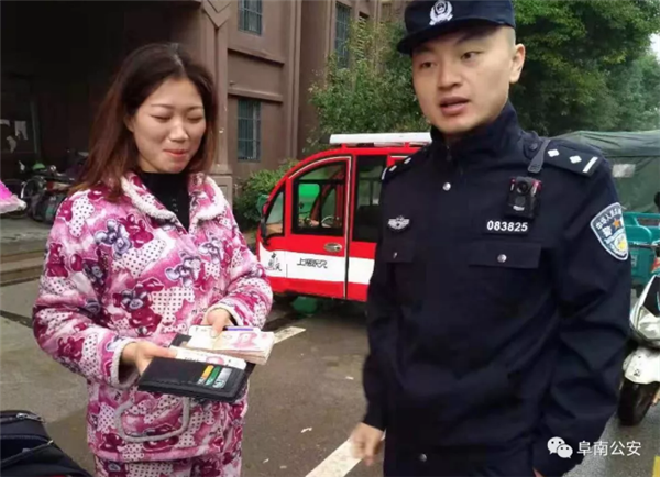 11月7日清晨6时左右,阜南县城北派出所接到群众报警:“警察同志,我捡到一个钱包,里面有好多现金,我不敢动你们快来看看啊。”
