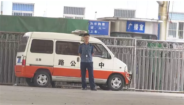 其实,离出站口仅20米远的距离,就停放着一辆公路部门的执法车辆,车辆旁边各站着一名城管队员和一名运政执法人员。
