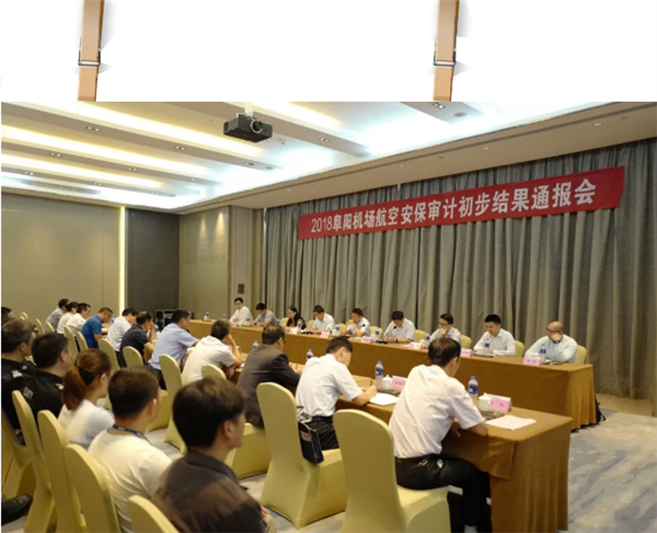 9月13日下午,2018阜阳机场航空安保审计初步结果通报会在万达嘉华酒店举行。会议由民航华东管理局航空安保审计组组长、民航安徽监管局空防处处长骆军主持。骆军处长通报了阜阳机场航空安保审计初步审计结果,