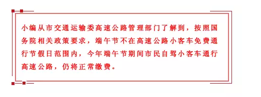 2018年6月16日(星期六)、6月17日(星期日)、6月18日(星期一)是端午节小长假。端午节期间,高速公路正常收费。目前,全市已进入高温天气,高温对行车安全带来不利影响,而节假日期间,市民外出活动