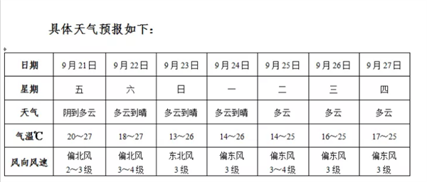 国庆黄金周近在眼前,那么长假期间本市的天气状况如何呢?预计国庆假期(10月1-7日)我市以晴好天气为主,气温适宜,无持续性雾和霾,总体气象条件良好,适宜外出活动。长假期间阜阳天气(点击查看大图)关注与